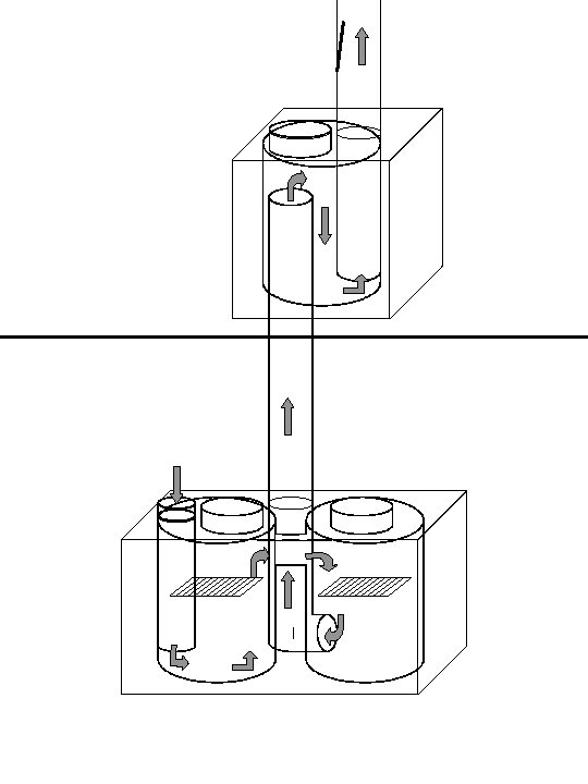 Jak juz obiecalem kilka schemacikow.Mam nadzieje ze pozwoli to na zrozumienie zasady dzialania.dodam tylko to zeby osiagnac dobry rezultat jezeli chodzi o ekonomike opalu potrzebne sa 4 beczki.Mozna je ustawic jedna na drugiej (pionowo) tak aby nie zajmowaly duzo miejsca i ogrzewaly np pierwsze pietro.Konfiguracji sa dziesiatki.Dobrze jest dwie pierwsze podlaczyc w poziomie tak aby druga sluzyla jako kuchnia--mozna wmatowac np na przestrzal w beczke rure metalowa o srednicy npp 35-40cmm dwie pokrywki od garnka no i mamy piekarnik przelotowy dostepny z obu stron beczki.Dodam jeszcze zdjecie piecyka ze szwecji ogrzewa 130m 2 powieszchni.Do wykonania mozna uzyc nie tylko beczek ale np-stary bojler wodny a polenisko np ze starej gasnicy itp...Opal-suche drzewo iglaste--bardzo dobre poniewaz zawiera zywice ktora wydziela duzo gazow a te sa ponownie spalane w drugiej komorze (beczce)Rura laczaca pierwsza beczke z druga(srednica 15 cm)ma za sciska plomienie wytwarzajac tym samym temp.600 stopni no a tyle potrzeba do kompletnego spalania gazu.W srodku wylozyc szamotem -z zewnatrz oblozyc 10 cm gliny no i niech sie pali.biorac pod uwage ze calosc jest metalowa CUG--jest fenomenalny prawdziwa Lokomotywa dlatego tez drzewo mozna wkladac pionowo